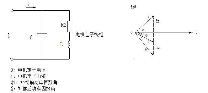 電容補(bǔ)償和進(jìn)相器補(bǔ)償?shù)脑韴D分別如下: